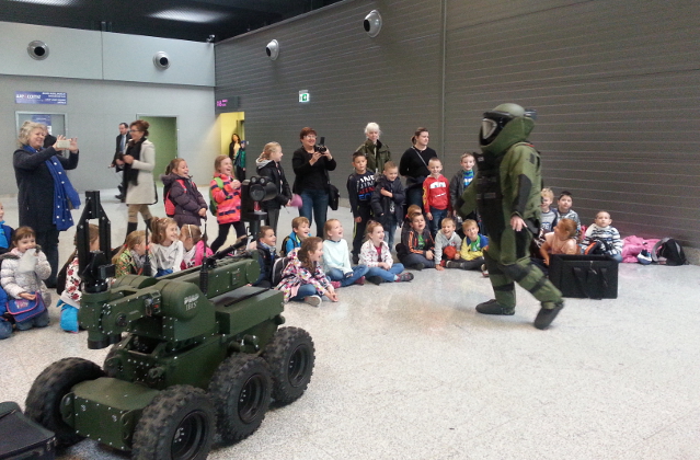 Dzieci i młodzież z Zespołu Szkół Ogólnokształcących i Technicznych w Wojkowicach, Szkoły Podstawowej nr 34 z Częstochowy oraz Miejskiej Szkoły Podstawowej nr 13 z Piekar Śląskich zobaczyły pokaz przygotowany przez funkcjonariuszy z Zespołu Interwencji Specjalnych. Funkcjonariusze zaprezentowali gościom między innymi pracę robota pirotechnicznego oraz kombinezon pirotechniczny EOD.