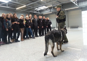 Kolejnym punktem wizyt był pokaz wyszkolenia psa służbowego, a także, dzięki uprzejmości funkcjonariuszy z Urzędu Celnego, pokaz urządzenia do prześwietlania bagażu. W trakcie spotkania z technikami kryminalistyki przybliżono gościom zagadnienia związane z daktyloskopią. Funkcjonariusze z Placówki omówili również główne zasady bezpieczeństwa, procedurę odprawy granicznej oraz kontroli podróżnego.