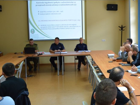 Wśród omawianych zagadnień funkcjonariusze szczegółowo omówili prawa i obowiązki cudzoziemców oraz sposoby przeprowadzania kontroli legalności pobytu i kontroli legalności zatrudniania cudzoziemców. Jednym z prelegentów był kpt. SG Ireneusz Margiel z Placówki Straży Granicznej w Opolu, który omówił uprawnienia organów w zakresie prowadzenia kontroli wobec cudzoziemców.