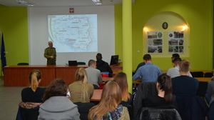 Studenci PWSZ z kierunku Bezpieczeństwo Państwa mieli okazję zapoznać się z charakterem i specyfiką służby w Straży Granicznej, w tym także z aktualnymi zagrożeniami transgranicznymi (nielegalna migracja, handel ludźmi i przestępczość narkotykowa). Podczas zwiedzania Sali Tradycji Formacji Granicznych studentom przybliżono historię formacji mundurowych, które strzegły polskich granic. Goście mieli także możliwość sprawdzenia swych umiejętności na strzelnicy, gdzie była okazja do strzelenia z broni pneumatycznej oraz do ćwiczeń na laserowym trenażerze strzeleckim.