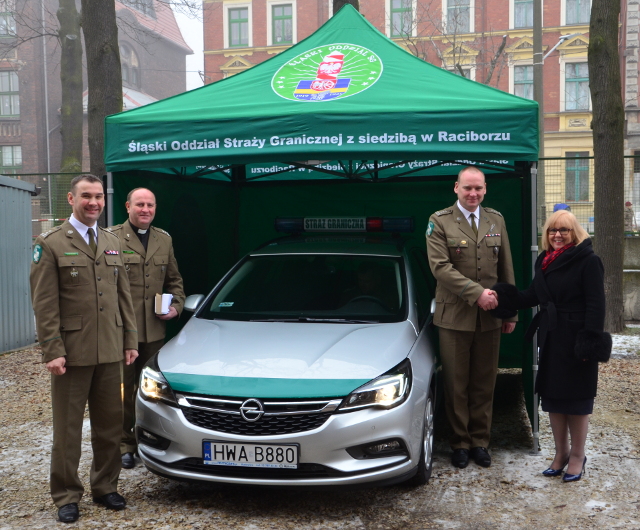 Tuż przed świętami funkcjonariusze z PSG w Rudzie Śląskiej odebrali kluczyki do nowego radiowozu. Kluczyki zostały przekazane uroczyście przez Panią Grażynę Dziedzic Prezydenta Miasta Ruda Śląska oraz płk. SG Adama Jopka Komendanta Śląskiego Oddziału Straży Granicznej. Nowy pojazd służbowy Opel Astra Tourer został dofinansowany przez Urząd Miasta Ruda Śląska, który przekazał na jego zakup 50% niezbędnych środków finansowych.