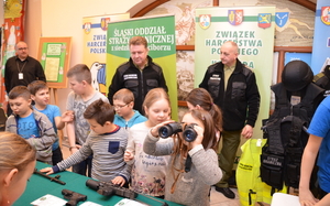 Przebywająca na zimowisku młodzież miała okazję dowiedzieć się jak wygląda codzienna praca funkcjonariusza Straży Granicznej. Dużym zainteresowaniem cieszył się prezentowany sprzęt służbowy i umundurowanie wykorzystywane przez funkcjonariuszy podczas codziennej służby.