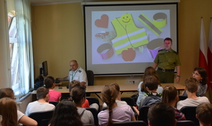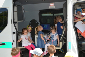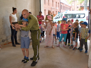 W ramach kampanii społecznej pod patronatem MSWiA „Kręci mnie bezpieczeństwo” funkcjonariusze zapoznali najmłodszych odwiedzających z zasadami bezpiecznego poruszania się po drogach i wręczyli im odblaski.