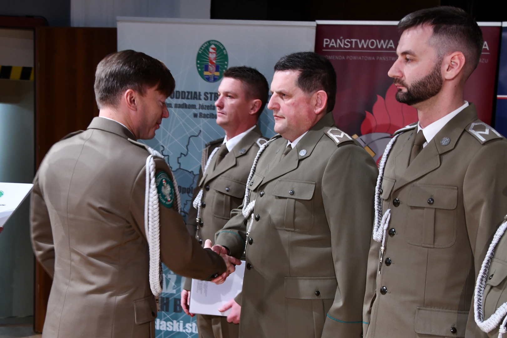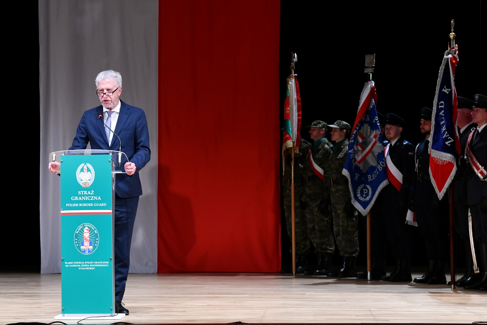 Podczas uroczystości głos zabrali Prezydent Miasta Racibórz Pan Jacek Wojciechowicz oraz Pani Wicestarosta Ewa Lewandowska, którzy w swoich przemówieniach podkreślali doskonałą współpracę służb, a także dziękowali funkcjonariuszom i pracownikom za pracę i służbę. Podkreślili także ważną rolę Straży Granicznej w Systemie Bezpieczeństwa Państwa.