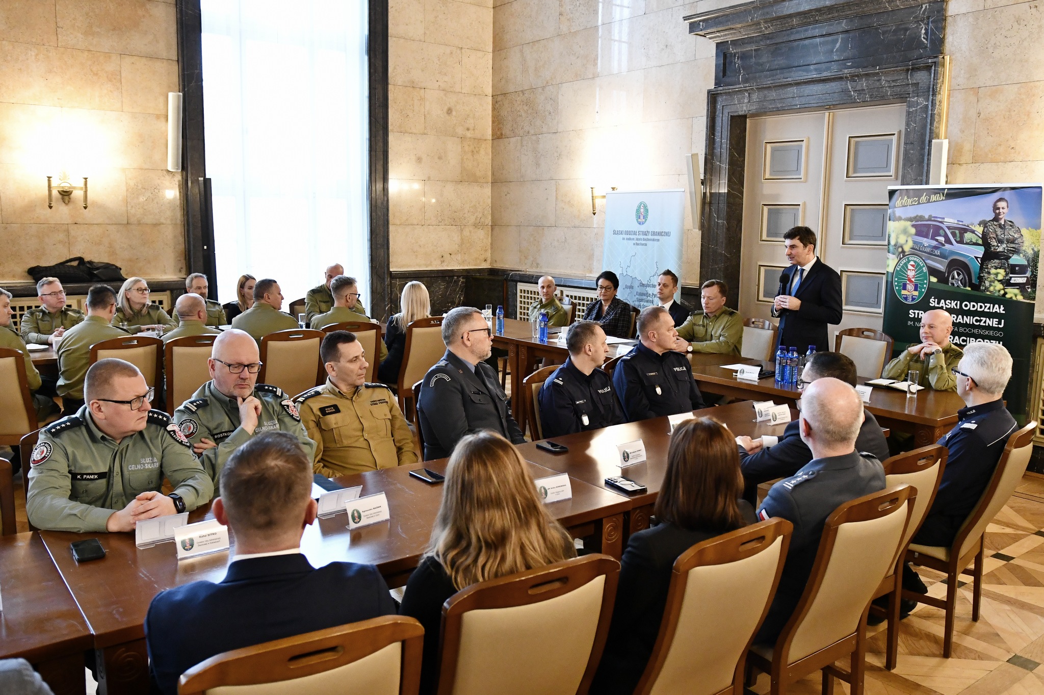 W spotkaniu, któremu przewodniczył Komendant Śląskiego Oddziału SG gen. bryg. SG Andrzej Jakubaszek, udział wzięli: Wojewoda Śląski Pan Marek Wójcik, Wojewoda Opolski Pani Monika Jurek, Dyrektor Zarządu do spraw Cudzoziemców Komendy Głównej Straży Granicznej płk SG Paweł Hołoweńko, przedstawiciele służb współdziałających województwa śląskiego, na czele z Komendantem Wojewódzkim Policji w Katowicach – nadinsp. Mariuszem Krzystyniakiem oraz Dyrektorem Delegatury ABW w Katowicach – płk. Pawłem Pilawą, a także przedstawiciele służb mundurowych województwa opolskiego, na czele z Dyrektorem Okręgowym Inspektoratu Służby Więziennej w Opolu – płk. Łukaszem Górnym oraz Dyrektor Delegatury ABW w Opolu – Panią płk Aniką Borkowską.