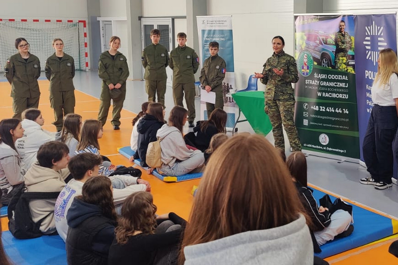 Funkcjonariusze Śląskiego Oddziału SG podczas dnia otwartego promowali służbę w Straży Granicznej, aby zachęcić uczniów klas ósmych do wyboru w przyszłości tej drogi zawodowej. Przedstawiliśmy ofertę naborową, opowiadaliśmy o naszej codzienności w służbie, odpowiadaliśmy na wszystkie pytania zadawane przez młodzież.