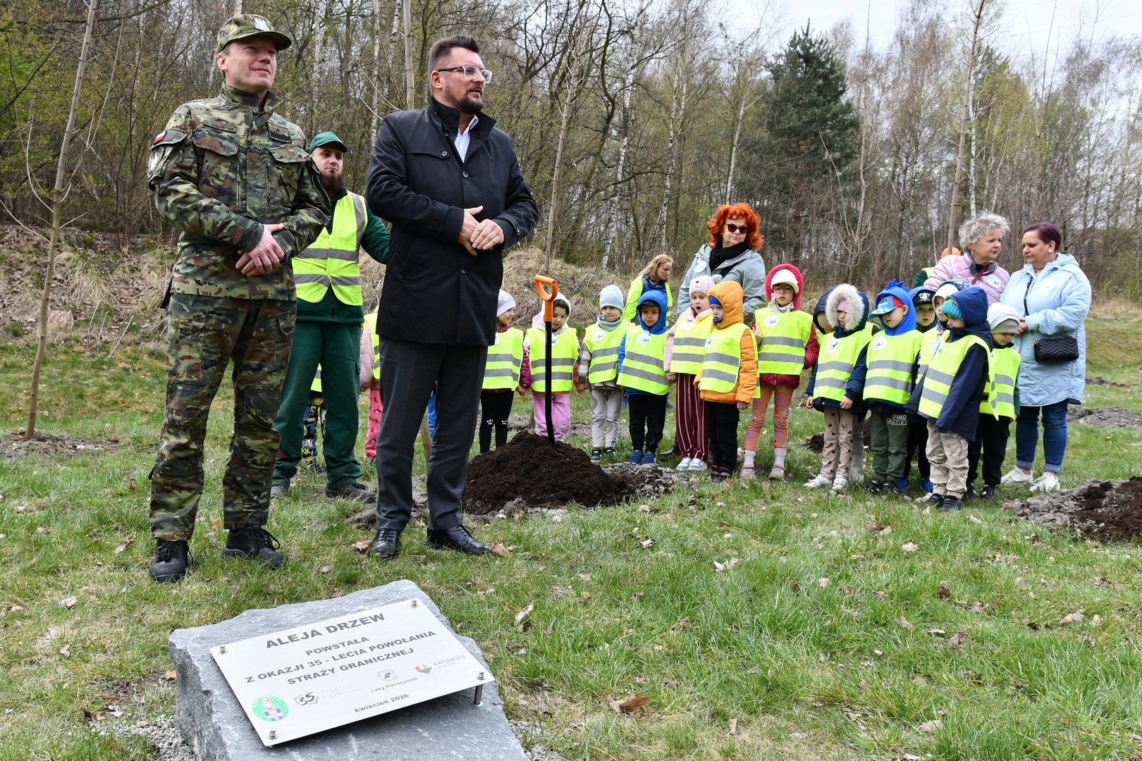 Pierwsze dwa drzewa posadzili Prezydent Miasta Katowice Marcin Krupa oraz Komendant Śląskiego Oddziału Straży Granicznej gen. bryg. SG Andrzej Jakubaszek.