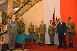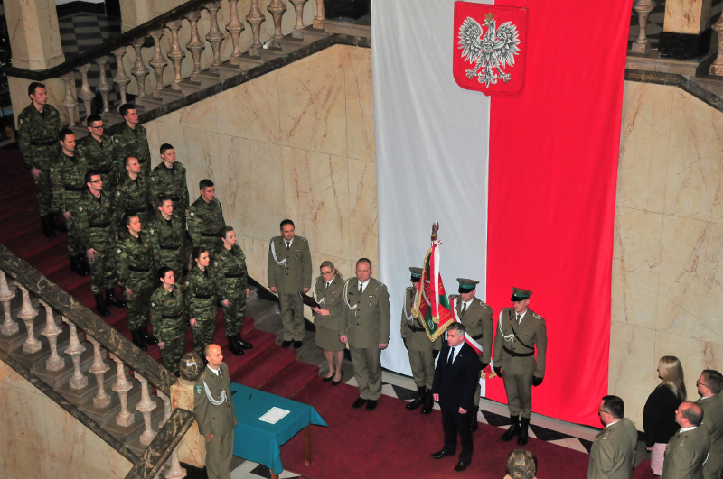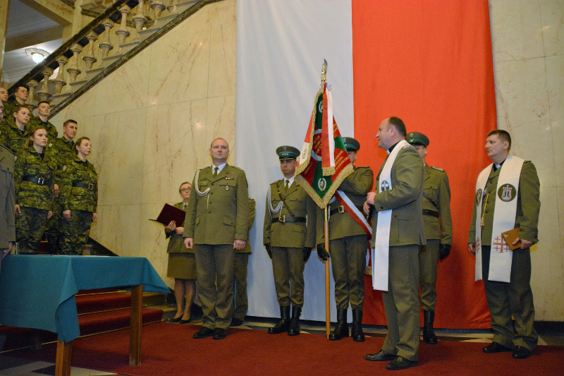 Ślubowanie, w obecności Wicewojewody Śląskiego Mariusza Trepki, Dyrektora Wydziału Spraw Obywatelskich i Cudzoziemców ŚUW Magdaleny Szewczuk – Szturc, Dyrektora Biura Administracyjnego ŚUW Doroty Drdzeń, Dyrektora Muzeum Powstań Śląskich w Świętochłowicach Haliny Biedy oraz kadry kierowniczej Oddziału i rodzin odebrał płk SG Adam Jopek Komendant Śląskiego Oddziału Straży Granicznej. Komendant ŚlOSG przywitał nowych funkcjonariuszy w szeregach Straży Granicznej, podkreślił znaczenie słów roty ślubowania i życzył wszystkim nowo przyjętym funkcjonariuszom zadowolenia z pełnienia służby. Błogosławieństwa ślubującym funkcjonariuszom udzielił Dziekan Ewangelicki SG płk SG Kornel Undas oraz kapelan KaOSG ks. szer. SG Robert Młynarczyk.