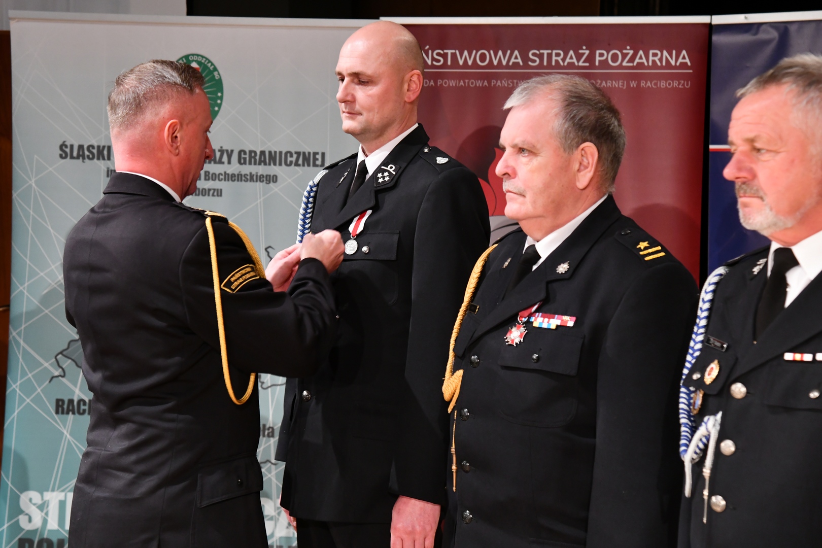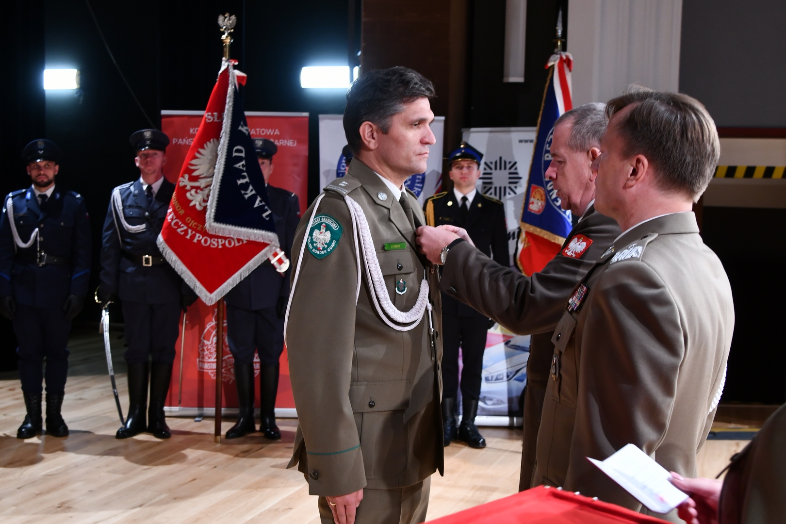 Podczas uroczystości brązowym medalem za zasługi dla obronności kraju został odznaczony Zastępca Komendanta Placówki SG w Katowicach-Pyrzowicach, ppłk SG Grzegorz Dąbek. Medal wręczyli Szef Ośrodka Zamiejscowego w Katowicach Centralnego Wojskowego Centrum Rekrutacji, płk Dariusz Kaminiów oraz gen. bryg. SG Andrzej Jakubaszek.